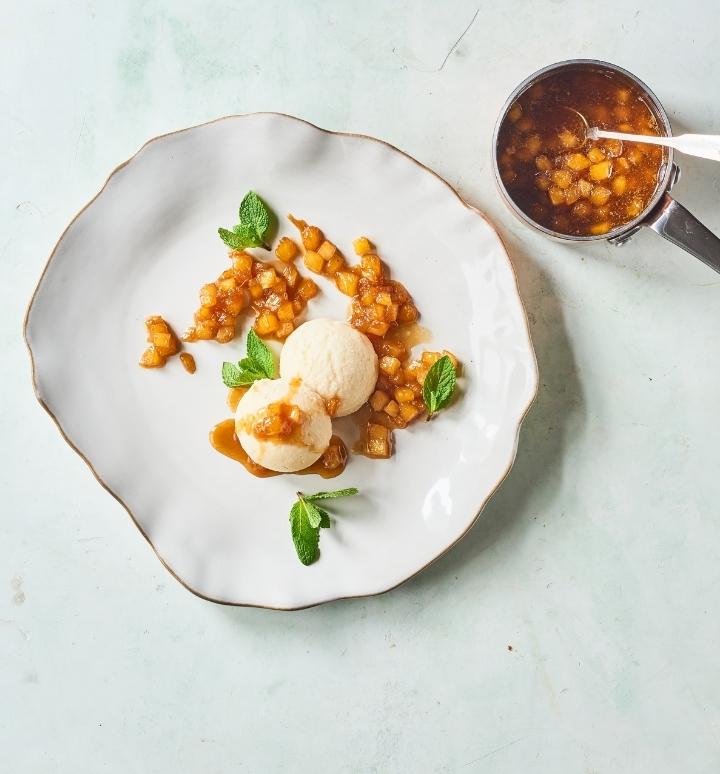 Karamelliseret ananas med is