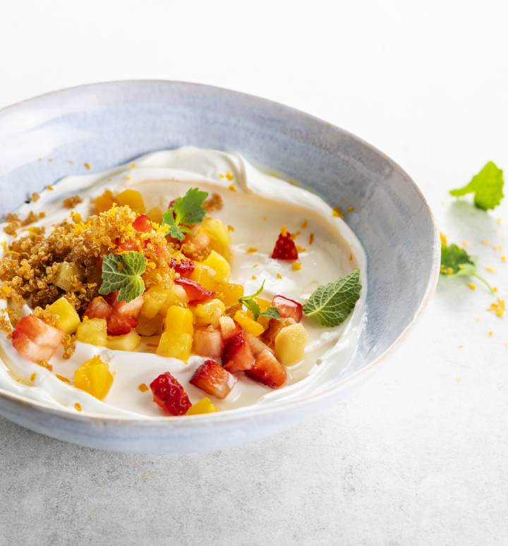 Græsk yoghurt med Frugt brunoise mix og quinoa