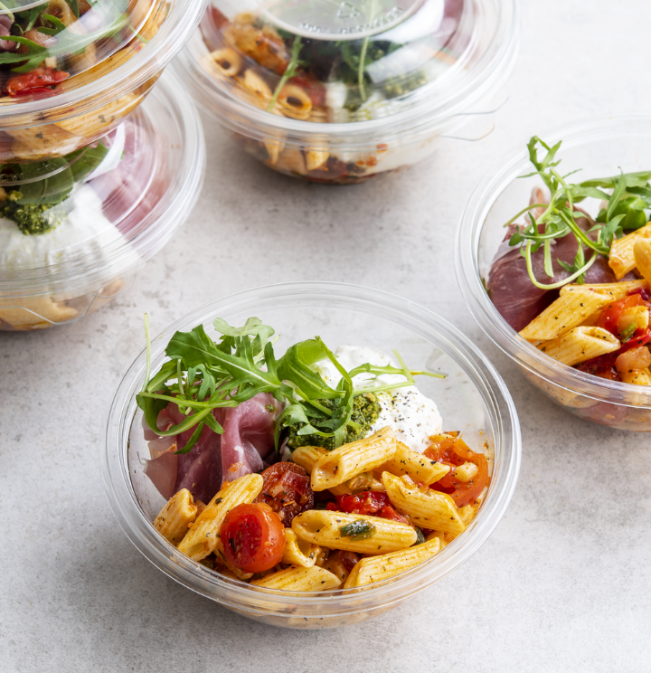 Ingredienser:2,5 kg Insalata Mediterranea5 burrata20 skiver lufttørret skinke50 g rucolaOlivenolieFleur de sel1 lime